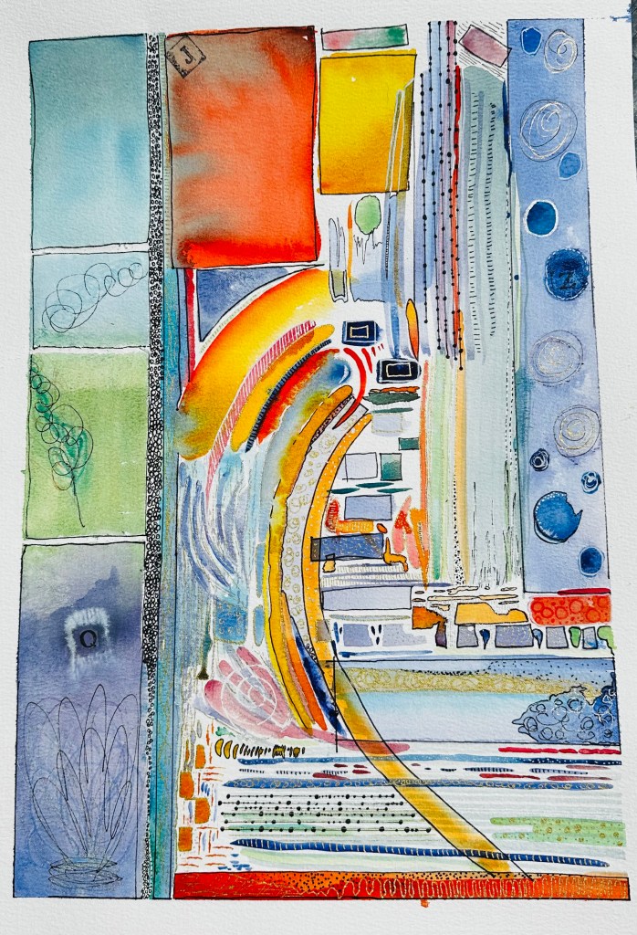 Vibrant abstract artwork featuring a blend of colors and dynamic shapes, embodying a sense of creativity and expression.